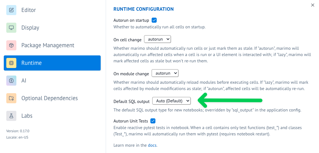 Alternatively you can also use the marimo configuration file to configure the default SQL output.